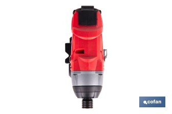 This Li-Ion battery operated 1/4" impact driver has a variable speed control of 0-2000 rpm and a left and right rotary switch. It also has 3 LED work lights and a metal clip to fix it to the belt. A carry case is included with accessories (4 pcs.) and a 18V battery charger.