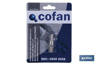 This M style plug has a male thread of 1/4", 3/8" and 1/2". This is a compact and lightweight hose fitting which is intended for all compressed air installations. It has a left-hand thread connection, so it does not require sealant application.