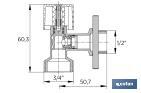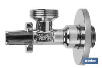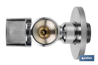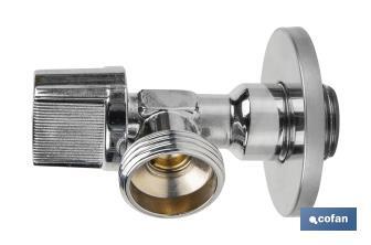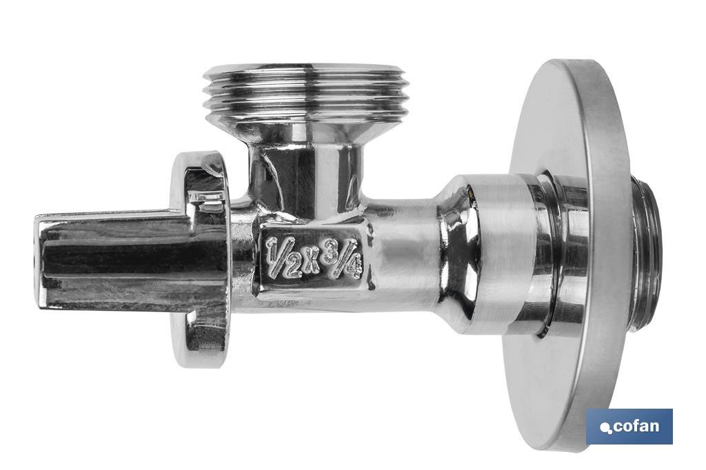 This angle valve 1/2" x 3/4" is suitable for connecting to the washing machine. It is made of brass CW617N. It has a 1/4 turn angle valve and a PN 16 bar. It also has a brass inner stem with EPDM joints for a perfect sealing, and an gas inlet thread (BSP). Available anti-scale option. It can be supplemented with a vertical handwheel for installation in confined spaces.