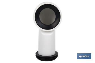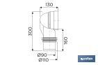 This 90° angled toilet pan connector includes a multiple ring rubber. It includes a Ø110mm multiple ring rubber for a perfect fitting, without leaks. The pan connector is made of high quality polypropylene that ensures a perfect durability. The outlet has a diameter of 90/110mm.