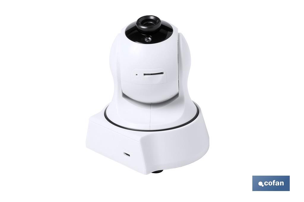 Cámara de seguridad inteligente HD 360° con soporte y fijación para pared. Control y visionado remoto, conexión wifi, sistema de notificaciones push, captura de vídeo y audio en tiempo real, cámara de fotos, altavoz, detector de movimiento con visión nocturna y alarma. Sistema de configuración sencillo. Sistema de configuración sencillo. Alimentación red AC 220-240V.