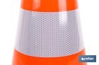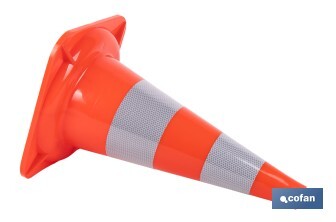 Aumenta la seguridad en carretera, zonas de trabajo o espacios de tránsito con este cono de señalización para automoción de 50 cm, diseñado para ofrecer máxima visibilidad, resistencia y estabilidad en cualquier situación. Su color naranja intenso y sus dos bandas reflectantes blancas a distinta altura permiten una excelente visibilidad tanto de día como de noche, incluso en condiciones climáticas adversas. Fabricado en PVC de alta calidad, este cono es muy robusto y cuenta con una amplia base, lo que le confiere una gran estabilidad. Sus dimensiones son de 29,5 x 29,5 x 50 cm y su peso de 958 gramos, ofrece una excelente combinación entre ligereza y firmeza, lo que facilita su transporte sin comprometer la estabilidad en superficies irregulares o con viento. Su base ancha le aporta una sujeción superior al suelo, reduciendo el riesgo de vuelco accidental. Este cono de señalización es ideal para múltiples usos: señalización temporal en talleres, delimitación de zonas de trabajo, prevención en áreas de riesgo, eventos, obras o retenciones en carretera. Las bandas reflectantes integradas proporcionan una mayor seguridad en situaciones con baja visibilidad, niebla o poca luz, lo que lo hace indispensable para profesionales del transporte, mantenimiento vial o particulares que buscan un accesorio fiable y homologado para emergencias.