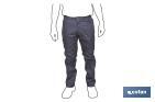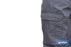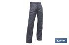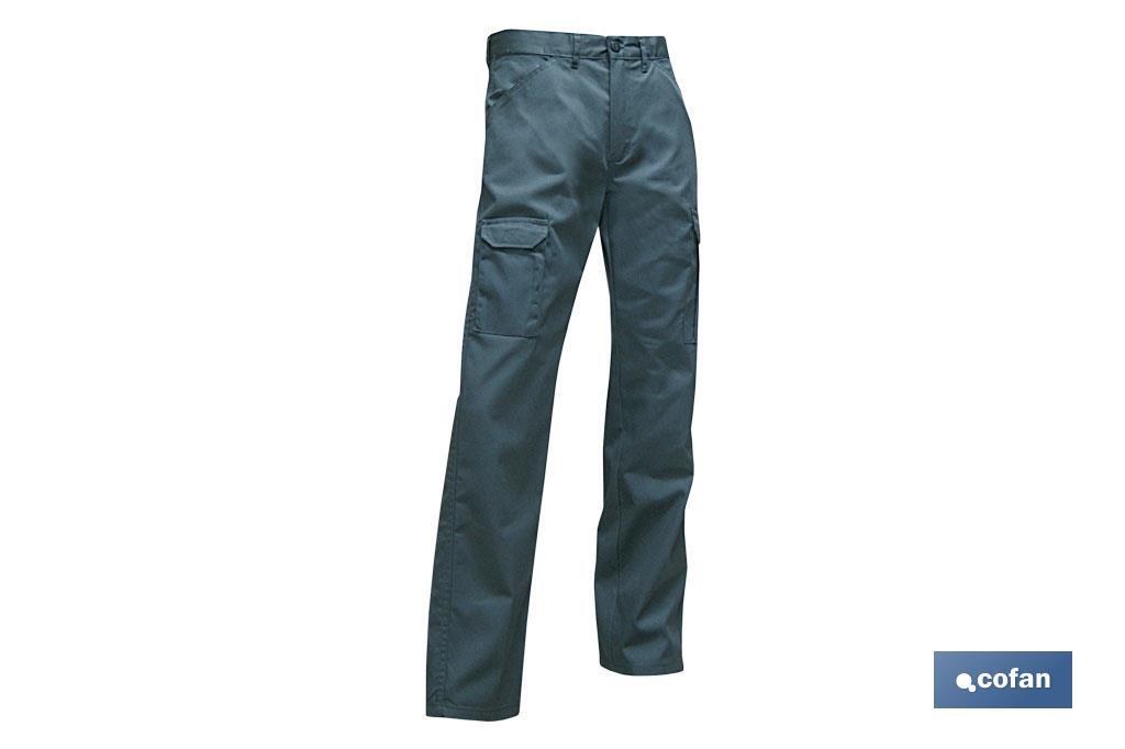 Pantalon de travail modèle Servet. Sa composition : 65 % polyester/35 % coton - 245 g/m2. Fermeture centrale par fermeture éclair et bouton, il dispose d'une poche pour garder le portable et une autre poche avec double pli. Tailles disponibles de la 38 jusqu'à la 64. Couleurs : vert, gris, bleu marine et vert foncé.