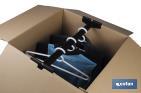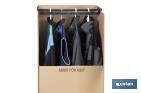 Caja armario de cartón para mudanzas con medida 50 x 50 x 120 cm. Esta caja es una excelente solución de embalaje, ya que está diseñada para el transporte y almacenamiento de prendas colgadas, con el fin de evitar que éstas se arruguen. Estas cajas armario se componen por una pieza de cartón ondulado de alta resistencia. Barra no incluida.