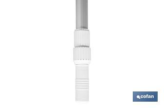 Perche extensible avec manche et régulateurs en plastique conçue pour atteindre tous les coins. C'est un accessoire indispensable à l'entretien de la piscine. On peut l'utiliser pour nettoyer piscines, étangs, baignoires hydromassage, fontaines ou aquariums grands. Disponible avec manche de couleur bleu et régulateurs en plastique blancs. Elle est fabriquée en aluminium renforcé. Cette perche a une longueur minimale de 120 cm et maximale de 240 cm, avec un système extensible qui permet de l'utiliser et de la ranger de manière excellente.