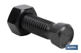Tornillo de arado de cabeza cónica fabricado en acero y con baño pavonado. Recomendado para utilizarse en aplicaciones relacionadas con el sector agrícola. Se trata de un tornillo de calidad 12.9 de alta resistencia y rendimiento que resiste a las altas temperaturas. Incluye una tuerca hexagonal DIN 934 de calidad 10. Disponible en métrica 12 y 14, y en diferentes longitudes. Según la medida del tornillo, este se suministra en cajas de 25 o 50 unidades.