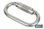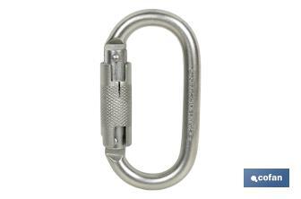Mousqueton de sécurité fabriqué en acier de très bonne qualité de couleur zinguée. Il possède une fermeture automatique de 1/4 de tour. Grâce à son mécanisme de blocage automatique, ce mousqueton est la meilleure option pour attacher les harnais antichute à n’importe quel dispositif antichute. Charge : 25 kN. EN 362:2004, classe B, EPI de catégorie III. Son ouverture maximale est de 16 mm. Il possède une grande résistance et sécurité grâce aux matériaux avec lesquels il est fabriqué.