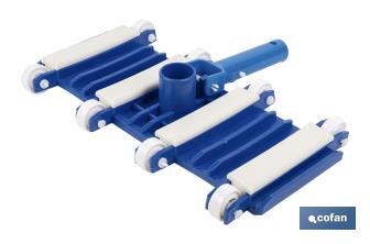 Nettoyeur de fond, ou balayeur flexible, conçu pour assurer un nettoyage efficace de la piscine, avec un fond exempt de débris et une eau cristalline. Fabriqué en polyéthylène flexible et doté d'une connexion sûre et stable grâce au système d'attache rapide, ce nettoyeur de fond s'adapte facilement aux différentes formes et angles de la piscine, permettant un nettoyage complet et efficace. Sa conception robuste garantit une longue durée de vie utile et un usage intensif. Ce nettoyeur de fond augmente considérablement la portée du nettoyage, garantissant que chaque coin de la piscine est exempt de saletés. Les 8 roues intégrées facilitent le déplacement du robot de piscine sur le fond de la piscine, ce qui permet un nettoyage rapide et sans effort. Les roues sont conçues pour rouler en douceur sur n'importe quelle surface, en évitant les rayures et les dommages. Compatible avec les tuyaux d'aspiration de Ø 3,8 cm, ce nettoyeur de fond peut être facilement connecté à la plupart des systèmes de filtration et d'aspiration, garantissant une aspiration puissante et constante. Avec des dimensions de 33 x 18 cm et doté d'une poignée de Ø 2,8 cm, ce nettoyeur de fond est parfait pour les piscines de toutes tailles, offrant une large couverture et une grande maniabilité. Idéal pour éliminer les algues du fond de la piscine, afin qu'elle reste propre et sûre pour les baigneurs. Parfait pour l'entretien quotidien ou hebdomadaire, il aide à garder l'eau claire. Mode d'emploi. Insérez le tuyau d'aspiration de Ø 3,8 cm dans le raccord du nettoyeur de fond. Placez le nettoyeur de fond dans l'eau et laissez-le se déposer au fond de la piscine. Déplacez le nettoyeur de fond le long du fond de la piscine, en veillant à couvrir toutes les zones. Une fois le nettoyage terminé, débranchez le tuyau et rangez le nettoyeur de fond dans un endroit sec.
