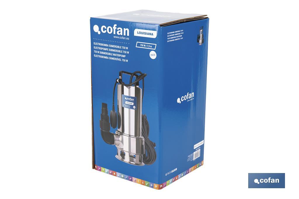 Electrobomba sumergible, modelo Lousiana, indicada para la extracción de aguas sucias. Con una potencia de 750 W, está diseñada para ofrecer un rendimiento superior. Cuenta con un caudal máximo de 13.000 litros por hora y puede bombear a una altura de hasta 7,5 metros. Su capacidad de inmersión de hasta 7 m y su salida de 1 1/2" la hacen ideal para diversas aplicaciones domésticas y profesionales. Fabricada con una carcasa de acero inoxidable resistente a la corrosión, esta bomba está preparada para mover impurezas de hasta 35 mm, lo que la convierte en una herramienta versátil. Además, cuenta con un sistema de arranque y de parada automático mediante un interruptor de flotador que evita que la bomba se sobrecaliente durante el funcionamiento en vacío. La electrobomba tiene un cable de 10 metros de longitud para aportar flexibilidad a la hora de conectar la herramienta, además de un asa ergonómica que permite manejar fácilmente la bomba sin tirar del cable. Sus dimensiones compactas, 20 x 28 x 29,5 cm, y su peso 5,5 kg, permiten un uso eficiente de la electrobomba en espacios reducidos. Esta electrobomba es la solución ideal para quienes buscan una herramienta eficiente y duradera para bombear aguas sucias.