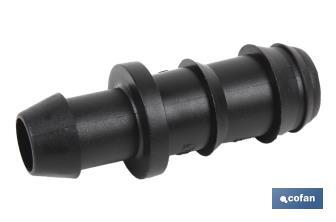 Esta tomada é a solução perfeita para fazer ligações entre dois troços de mangueiras de rega. Especialmente recomendado para Jardinagem e Agricultura. Com esta tomada de rega poderás fazer ligações entre mangueiras ou tubos gotejadores de diferentes tamanhos.Este soquete é a solução perfeita para fazer conexões entre duas seções de mangueiras de irrigação. Este elemento é essencial na hora de criar circuitos de rega em sistemas de jardinagem e agricultura. É uma peça importante na hora de gerar sistemas de rega funcionais e eficazes. Permite fazer emendas e ligações de forma confortável e eficaz, economizando tempo e esforço. O material deste produto é resistente e compacto e foi concebido para ser utilizado em condições climatéricas adversas. Resiste a choques e arranhões.